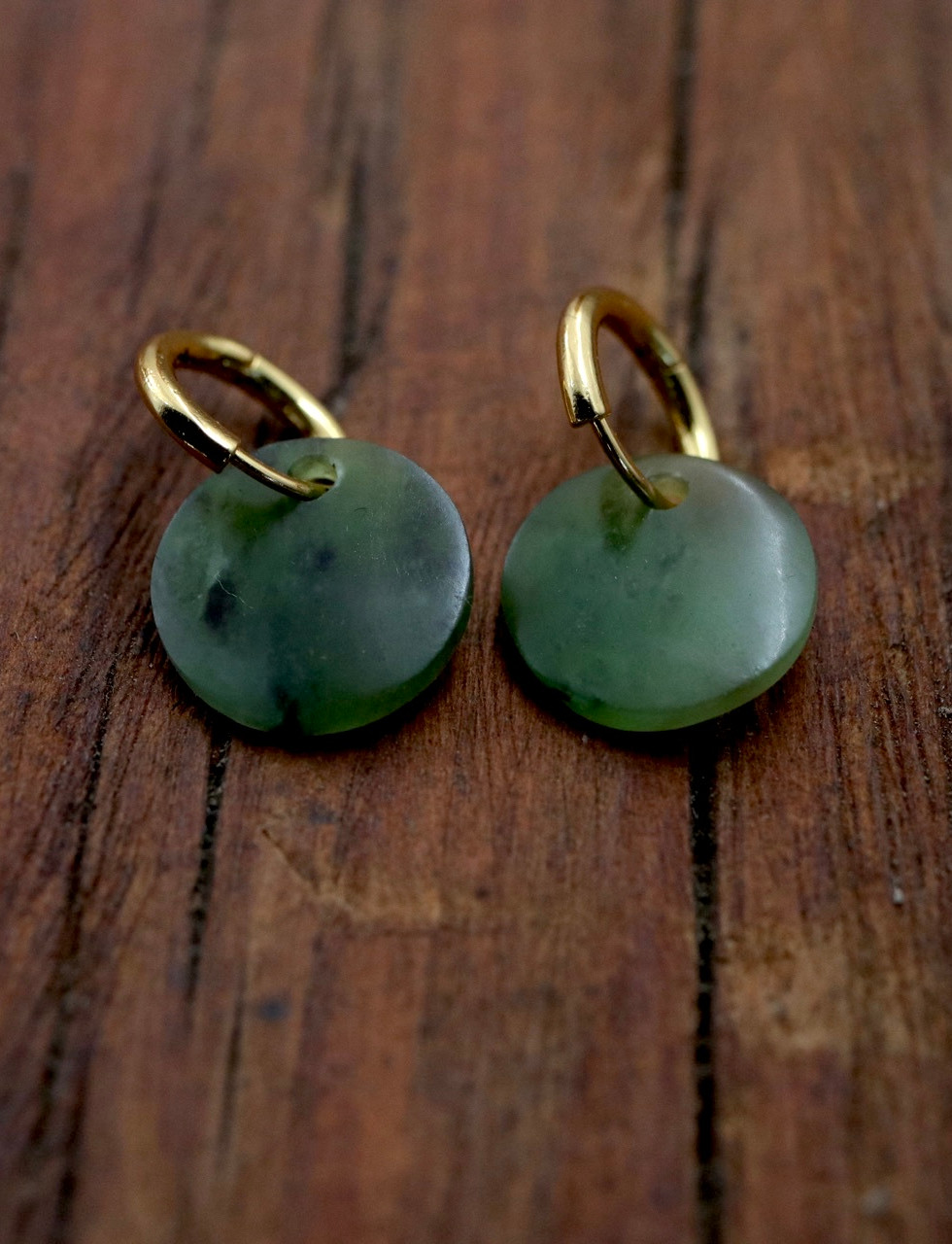 Each taonga is made from a one-off piece of pounamu, suspended on goldplated sterling silver huggies..