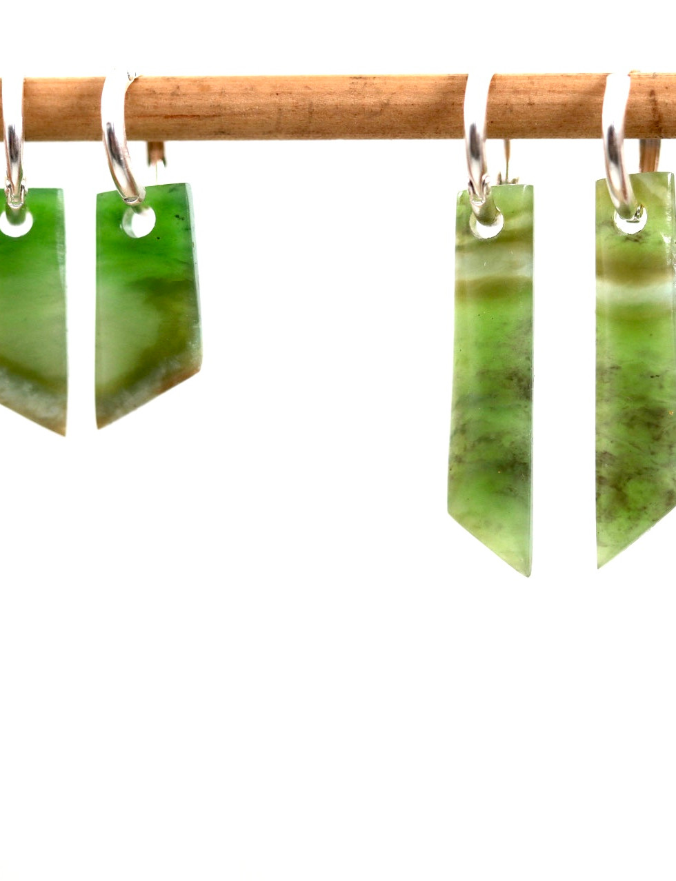Handcrafted pounamu shaped toki on sterling silver huggie